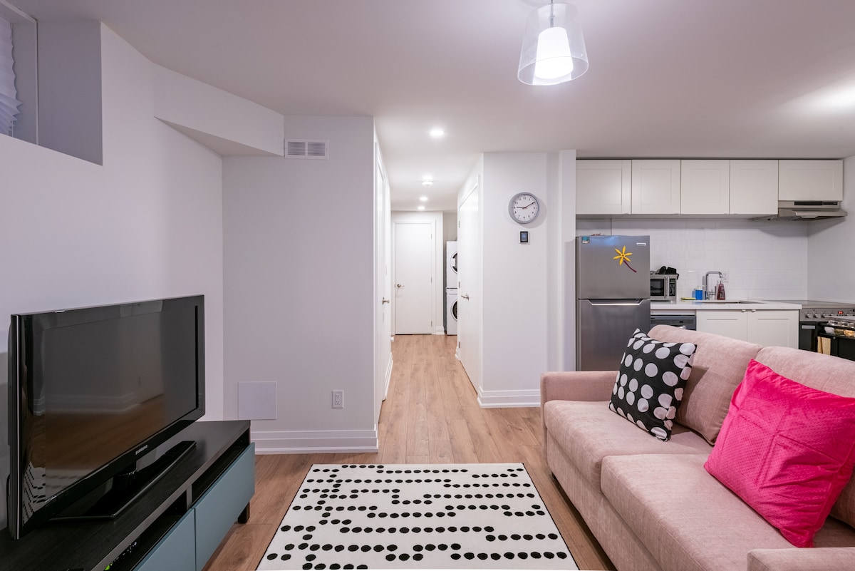 Ti diamo il benvenuto nella nostra elegante suite recentemente ristrutturata, situata nella trendy St. Clair Avenue West, nel cuore di Toronto! La suite dispone di una spaziosa camera da letto con un lussuoso letto matrimoniale, una cucina completamente attrezzata con elettrodomestici nuovi di zecca e un elegante bagno con una lussuosa doccia a pioggia. Goditi la comodità di essere a pochi passi dai migliori ristoranti, caffetterie e negozi in uno dei quartieri più vivaci di Toronto. A 20 minuti a piedi dalla stazione di St. Clair West, a 5 minuti dal tram.
