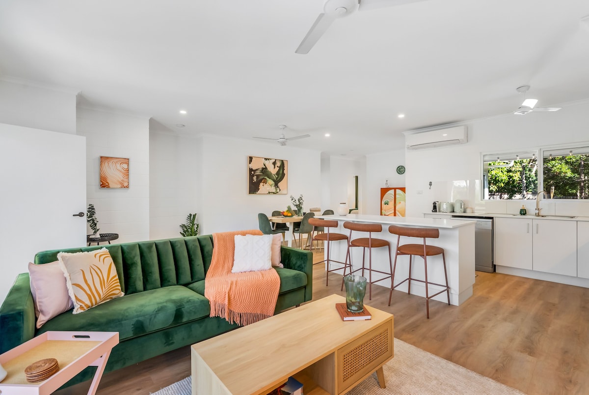 Melaleuca Beachfront is your freshly renovated, modern, coastal top-floor retreat. It is fully air-conditioned and features an open-plan living area, a large balcony with a stunningly private outlook, and a well-equipped kitchen. Enjoy unlimited Wi-Fi, garage parking, and easy access to the beach and the complex pool. With plenty of amenities and a prime location, this apartment offers everything you need for a comfortable and relaxing stay.