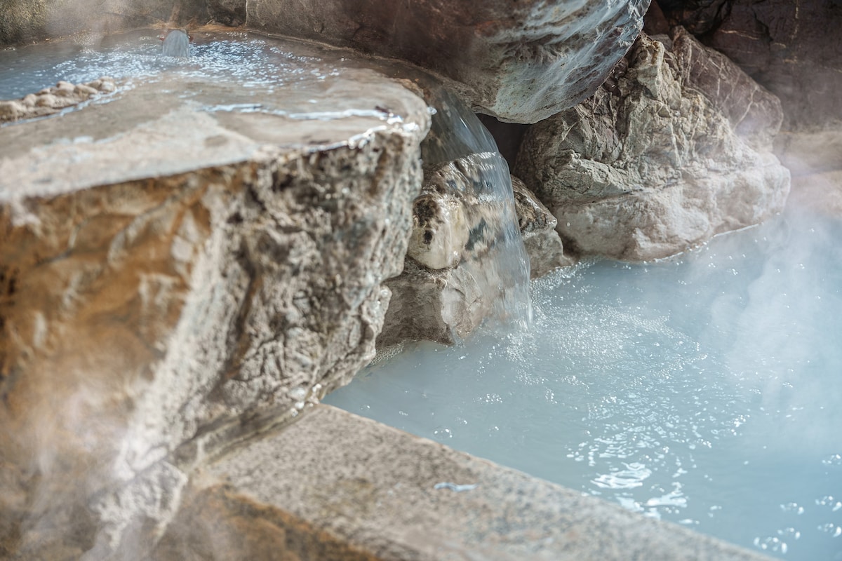 NUOVA APERTURA [Villa Reine] Una lussuosa casa in affitto. Uno spazio lussuoso che non puoi sperimentare nella vita di tutti i giorni. Sorgente termale privata inclusa. Perfetto per coppie o viaggi in famiglia con bambini. Svegliati con la luce del sole e addormentati al tramonto: vivi momenti di pace in un elegante spazio simile a un caffè, dove il suono rilassante dell'acqua calda che scorre dalle sorgenti termali è come una terapia ASMR. Può ospitare fino a 4 persone. 1 posto auto disponibile.