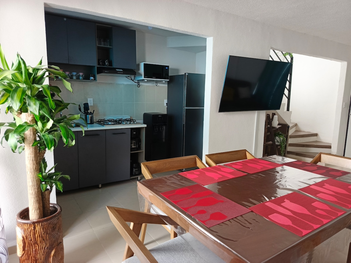 Crea ricordi indimenticabili in questa casa unica e di famiglia. Silenzioso e pulito! Biancheria da letto di qualità, spazi adatti, divano letto in sala. Posizione centrale, ottima posizione, situata al terzo piano, servizio di base, stazioni gratuite, servizio di pulizia a pagamento, a pochi passi con un negozio self-service come OXXO, supermercato, taqueria e caffetteria!