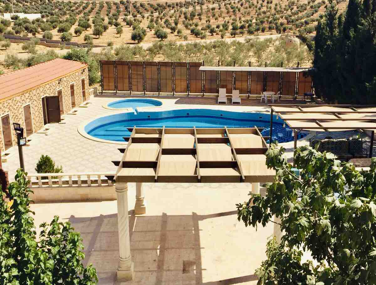 Una spaziosa fattoria con una casa con piscina privata circondata da alberi e situata sulle montagne di Jerash. Il nostro alloggio è molto attraente per le famiglie con bambini, in quanto offriamo un'area giochi all'aperto e una piscina per bambini. ** sconto speciale per soggiorni lunghi**