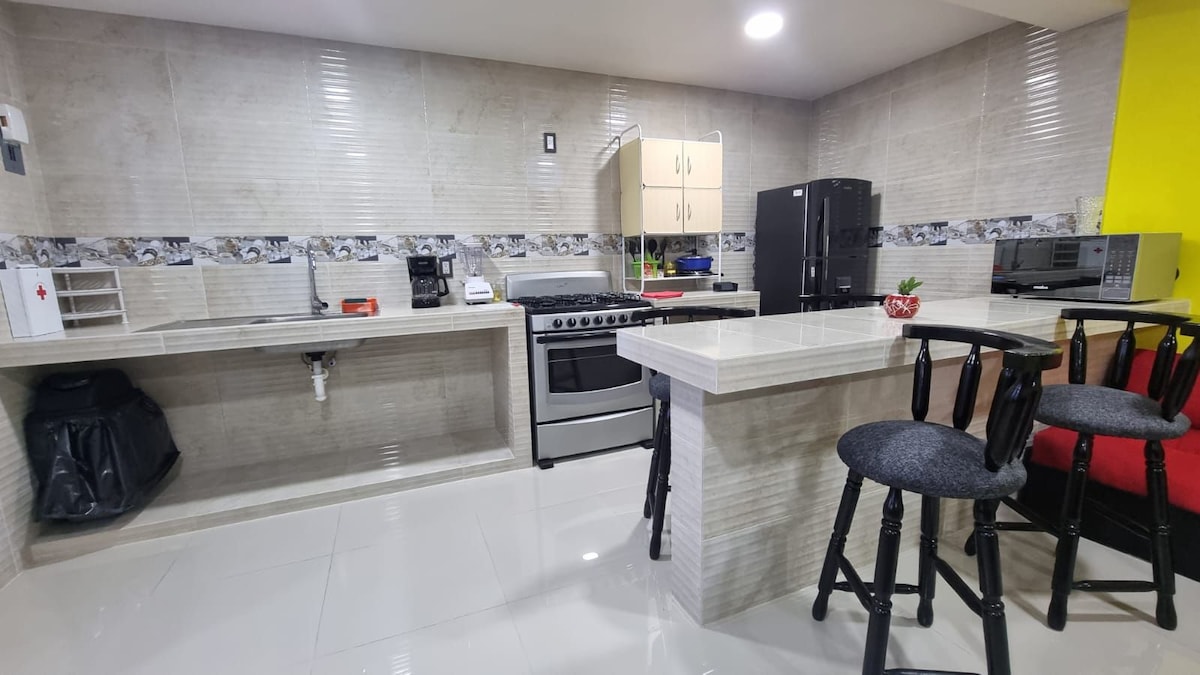 Goditi il tuo soggiorno a zacatlán de la Apple, siamo situati in una zona sicura. A soli 10 minuti dal centro città. L'appartamento ha tre camere da letto, due con un letto matrimoniale e una con letti singoli (divano letto per gli ospiti aggiuntivi) due bagni completi, soggiorno, cucina, sala da pranzo, garage, acqua calda 24x7. Durante il tuo soggiorno ti sentirai a tuo agio e con tutto l'essenziale per goderti la tua visita Offriamo tutte le misure sanitarie