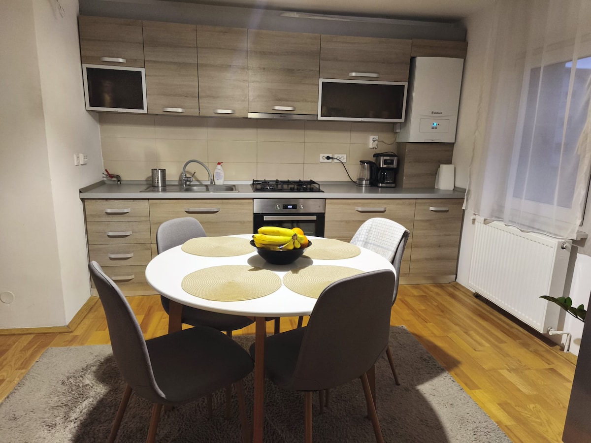 Rendi il tuo soggiorno confortevole e rilassante. Il nostro alloggio è situato proprio accanto a una fermata degli autobus e dei taxi, nella zona più verde di Zalau. Nelle vicinanze si trova un parco boschivo, così come una varietà di negozi e supermercati. Come host, facciamo di tutto per mantenere il comfort e la pulizia dell'alloggio. I servizi includono una cucina completamente attrezzata, una TV UHD da 43", accesso a pagamento ad Amazon Prime, aria condizionata, riscaldamento centralizzato, una vasca idromassaggio, un balcone panoramico, una lavatrice e biancheria da letto in fibra naturale. Tutto in un edificio tranquillo e pulito.