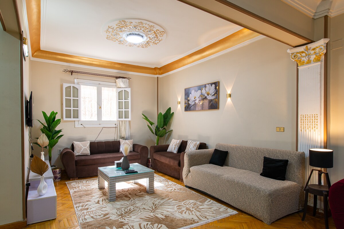 This unique and luxurious apartment is located in Zamalek, Cairo. The place is family friendly and you will feel like its your home, the place is safe with 24/7 security 🏡 its located in the El Zamalek which is the central and heart of Cairo. Perfect for up to 4 guests who value luxury, comfort and a prime location in Cairo and it's safe & walkable 📍 Distances to Key Attractions: Cairo Tower: 1.5 km Egyptian Museum: 3.5 km Egyptian Grand museum: 15 km Giza Pyramids: 13 km Cairo Airport: 22 km
