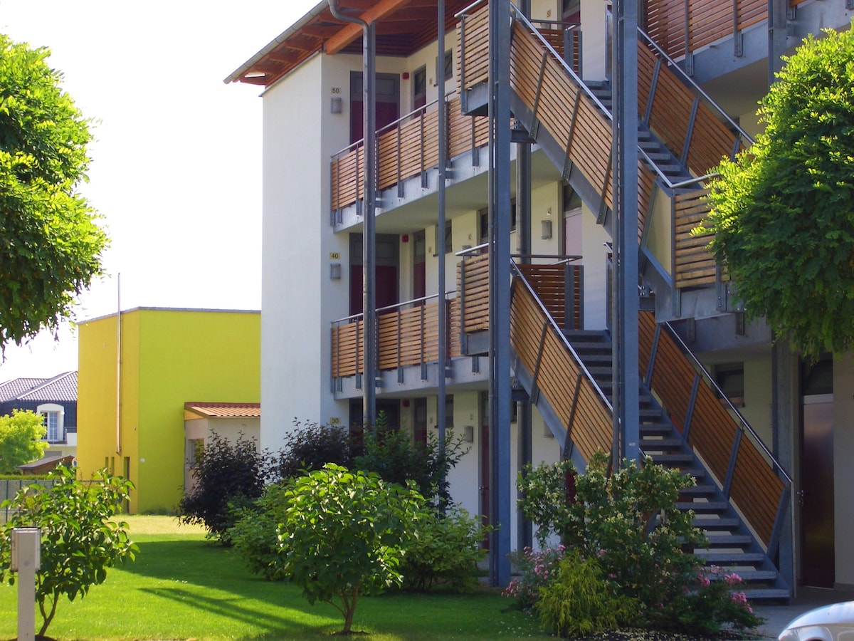Appartamento in posizione tranquilla (54 mq.) in zona pedonale con angolo cottura, bagno con doccia, parcheggio presso la casa. Attrezzatura: TV, WiFi veloce, riscaldamento a pavimento (in estate: aria condizionata), letto queen-size (1,60m x 2,00m), 2 divani letto, tavolo da pranzo, scrivania, angolo cottura con frigorifero, forno a microonde, bollitore, mini forno, piano cottura, macchina per il caffè Senseo, stoviglie , bicchieri, posate, pentole, SERVIZIO DI PULIZIA una volta alla settimana / ogni due settimane, (a seconda della durata del soggiorno) INCLUSI