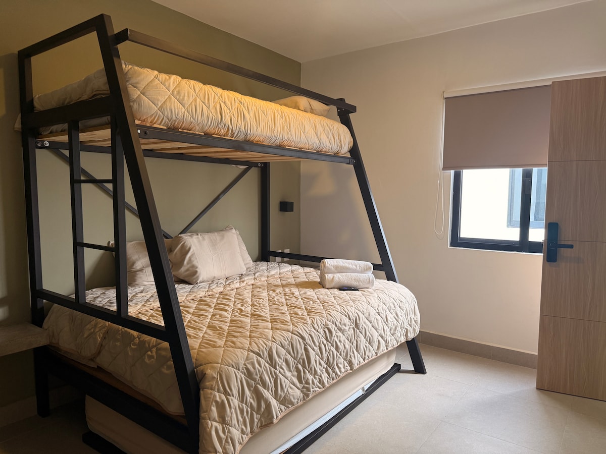 MORADA LIVING Monolocale accogliente e funzionale per i viaggiatori in cerca di comfort e posizione. Questo spazio dispone di un letto matrimoniale, un divano letto, una cucina attrezzata, una smart TV e una scrivania ideale per l'ufficio. L'edificio offre moderne aree comuni e un'atmosfera tranquilla per riposare o lavorare. Situato a Colonia Moderna, a pochi minuti dal centro storico, Colonia Americana e Agua Azul Park. Un'opzione pratica e confortevole per il tuo soggiorno a Guadalajara. Ti aspettiamo!