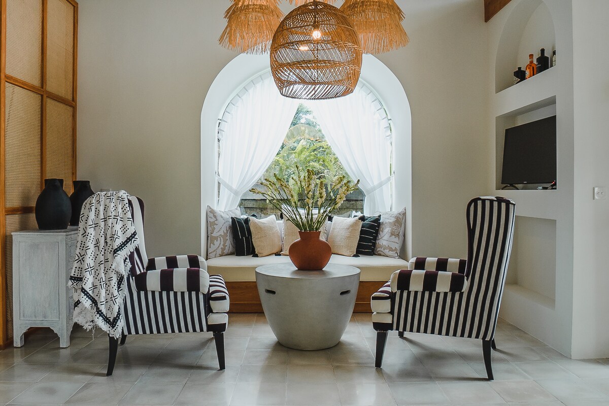 Rilassati e rigenerati nel nostro elegante bungalow. Costruito in un giardino tropicale a soli 3,5 km dal mercato di Ubud, è un luogo perfetto per rilassarsi ed esplorare Ubud e Bali in generale. Ampio 1BR, cucina, piscina privata, area salotto interna ed esterna e fantastico bagno con parete in vetro dal pavimento al soffitto che si affaccia sul giardino. Tutto ciò che viene fornito con una deliziosa colazione preparata al momento dal nostro team ogni mattina, GRATUITAMENTE. Per altre foto, ti preghiamo di visitare anche la nostra pagina Instagram Muda Living:) Grazie mille!
