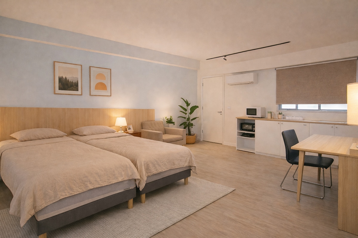 🌟 Taipei Core | Appartamento tranquillo, 1° piano, senza scale (parcheggio incluso) Appartamento con due camere da letto, recentemente ristrutturato, con pavimenti classici in rovere taiwanese e biancheria da letto da hotel a 5 stelle, ideale per 2-5 amici e familiari. Annuncio: nessun gradino, posto auto interno gratuito (alto fino a 1,9 m), estremamente adatto agli anziani e ai bagagli. Posizione privilegiata: 6-10 minuti a piedi dalla stazione di Daan Forest Park/Zhongxiao Xinsheng.5 minuti a piedi per il 7-Eleven. Accesso diretto a: Yongkang Street (3 minuti), Taipei Station (5 minuti), 101/Ximending (8 minuti). Servizi: letto matrimoniale king size nella camera da letto principale, letto matrimoniale standard nella seconda camera da letto, divano letto nel soggiorno.Tutta la biancheria da letto viene inviata per il lavaggio a secco professionale. Cucina: macchina da caffè Nespresso, filtro per l'acqua Brita, piano cottura a induzione, forno a microonde.Il bagno è dotato di toilette con bidet e asciugacapelli agli ioni. Caratteristiche: lavatrice e asciugatrice, Wi-Fi 6 Mesh, aria condizionata e deumidificatore in tutte le stanze. Istruzioni per la prenotazione: Per rispettare l'ambiente, vengono forniti solo articoli da toeletta e asciugamani; ti preghiamo di portare con te spazzolino e dentifricio. Tariffa: prezzo base per 4 persone, supplemento di 800 USD/notte a partire dalla 5a persona.Se il numero di ospiti non corrisponde, ci sarà un costo aggiuntivo di 1.000 USD a persona a notte. Codice: vietato fumare in camera, vietato fare feste, abbassare il volume dopo le 22:00. Servizi extra: noleggio culla/vasca da bagno (500 USD); consigli per il trasferimento da e per l'aeroporto o l'autonoleggio. Airbnb non è un hotel, quindi assicurati di poter rispettare le regole della casa prima di prenotare.Non vedo l'ora di ospitarti.