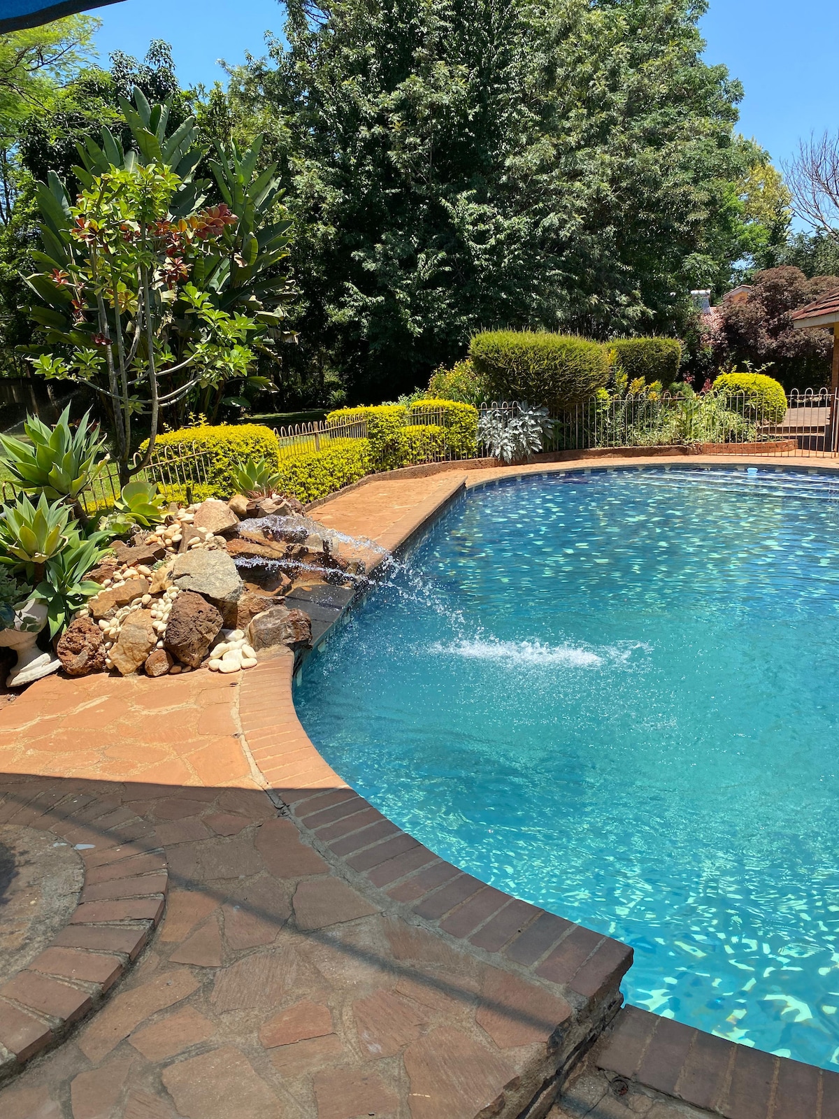 Situata in un giardino spettacolare, questa pensione ha tutti i comfort con un tocco artistico. Il cottage è completamente attrezzato con cucina e salotto, solarium, giardino privato, due camere da letto e due bagni. Il cottage è adatto alle famiglie, arredato con gusto con oggetti d'antiquariato e materiali riciclati. Una base confortevole per gli affari, la visita ai parenti o l'esplorazione. Grande generatore silenzioso. Wifi eDSTV. Adoriamo ospitare famiglie.