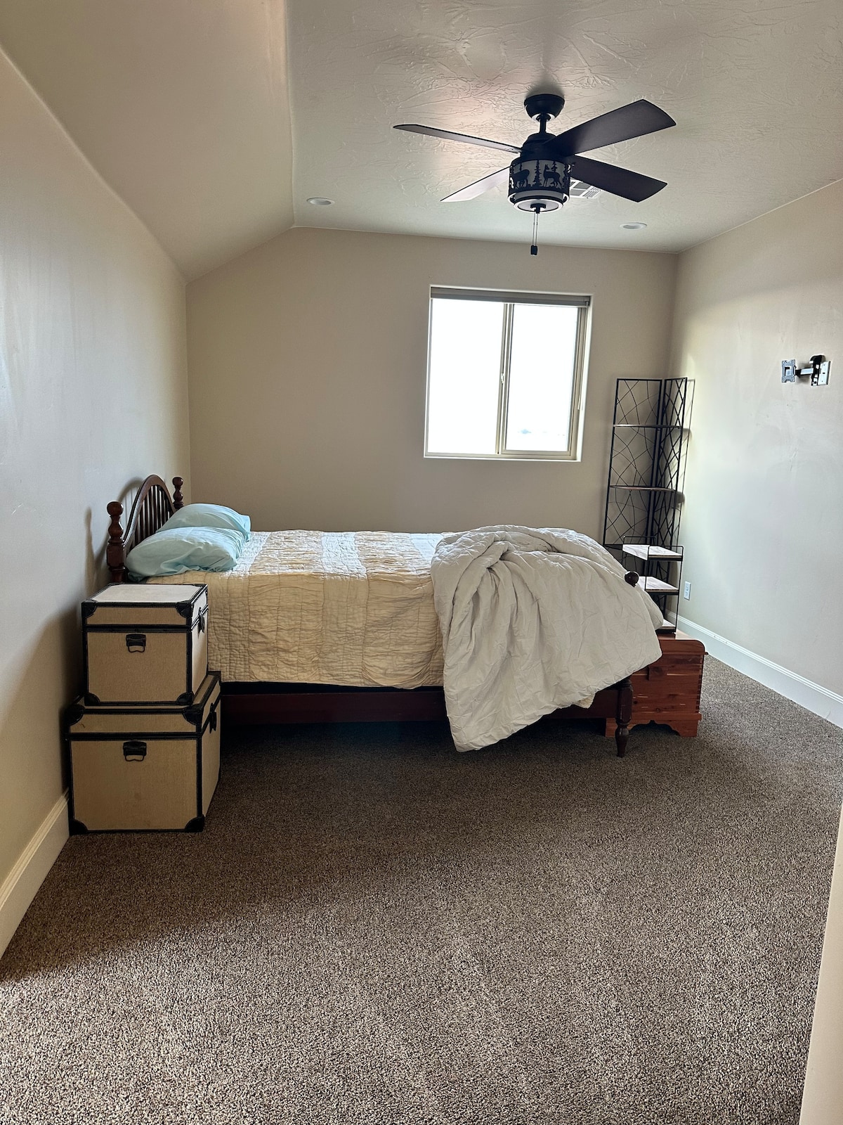 Recently built BNB added behind a 1921 pioneer home. Clean, cozy. 2 bedroom 2 bath tub/ shower combo, full kitchen, dining and living room. Each bedroom includes a queen bed, seperate heating/cooling system, full closets. Master bedroom has its own bathroon, TV, and walk out door to a patio with a view of the valley. The living area has vaulted ceilings, cozy fold out queen bed ,TV, guest ammenities area. Large Kitchen with full size appliances, fully stocked, (see pictures) washer/dryer