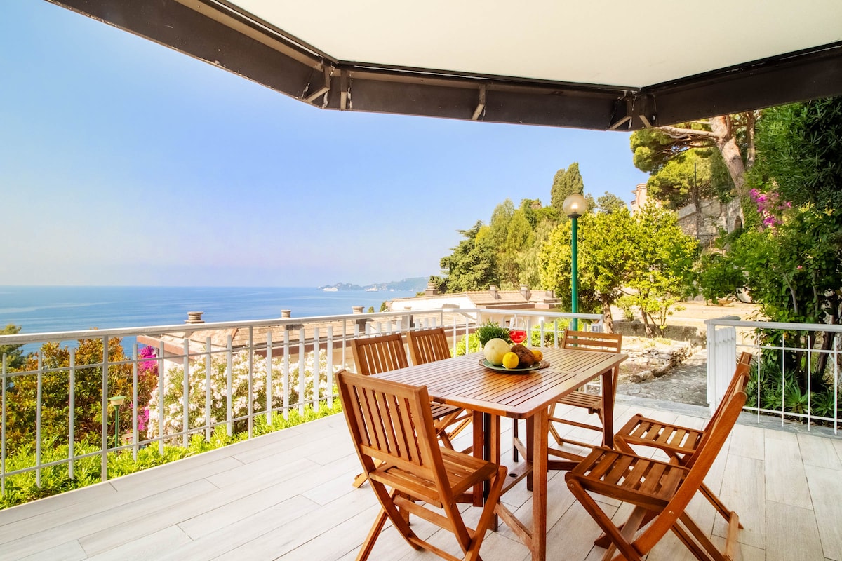 La casa è totalmente indipendente, immersa nel verde dell'uliveto ligure, con una vista mozzafiato sul Golfo Paradiso. Il panorama fruibile dalle terrazze e dalle finestre si apre dall'estremo ponente ligure al Monte di Portofino e nelle giornate limpide fino all'arcipelago toscano e la Corsica. Il mare (500 m.) Recco(1200 m.) il Parco Nazionale di Portofino(3km) sono raggiungibili oltre che in auto, anche a piedi con panoramiche passeggiate; Genova-Nervi dista 12 km (SS1 Aurelia)