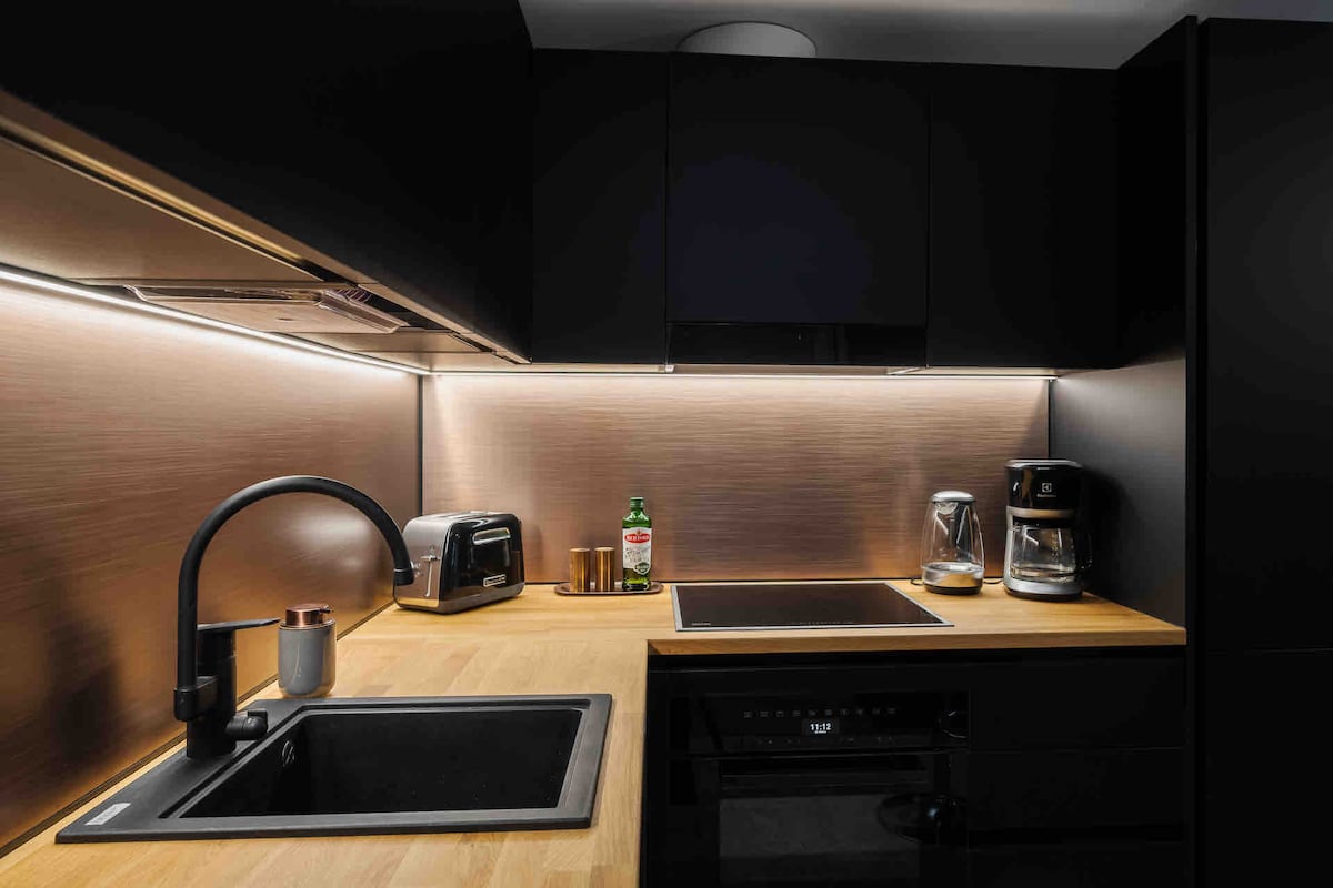 Elegante e spazioso appartamento nella posizione più centrale di Turku, vicino alla piazza del mercato, con ristoranti, negozi, musei e fermate degli autobus proprio davanti alla porta. Anche il fiume è a un isolato di distanza. Ben attrezzato, con dettagli di design, completamente ristrutturato nel 2023! Offriamo un letto matrimoniale (160x200 cm) nella camera da letto, un divano letto (90x180 cm) e un lettino da viaggio aggiuntivo su richiesta.