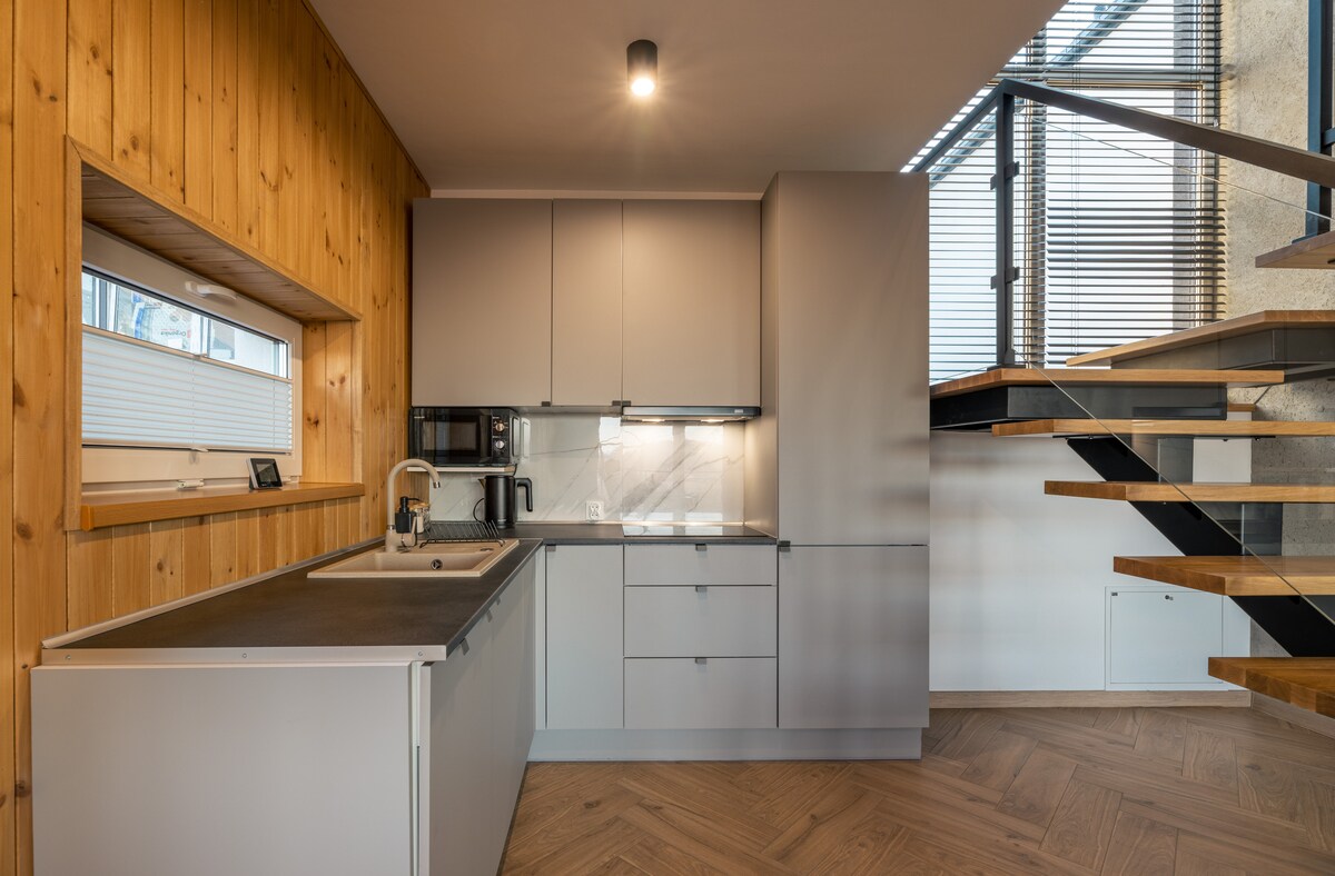 Una moderna casa a soppalco, aperta tutto l'anno, con un'area SPA privata nel cuore dei monti Bieszczady. Sauna, vasca idromassaggio per due persone e vasca idromassaggio sulla terrazza. Due camere da letto, aria condizionata, cucina completamente attrezzata, soggiorno con divano e TV, bagno con lavatrice. All'esterno, ci sono un braciere, un patio e lettini prendisole. Lenzuola, asciugamani, accappatoi e cialde di caffè sono inclusi. Parcheggio e un'atmosfera indimenticabile nel pacchetto! Riposo e tranquillità. Per l'uso della vasca, si applica un costo aggiuntivo di +150 zł a soggiorno.