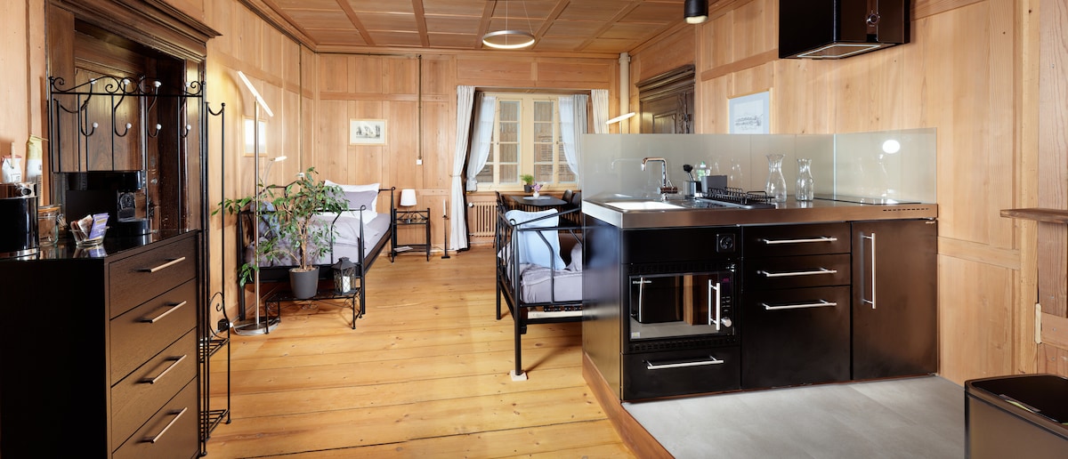 Welcome to our beautifully renovated 1777 farmhouse, tucked away in the quiet village of Winikon near Uster in Zurich. This warm and inviting studio apartment combines old-world charm with modern comforts, including a cozy bed, well-equipped kitchenette, and a comfy sitting area. Wake to views of a working horse farm and rolling green fields. It’s the perfect peaceful escape—ideal for slowing down, reconnecting, and experiencing the magic of Swiss country life.